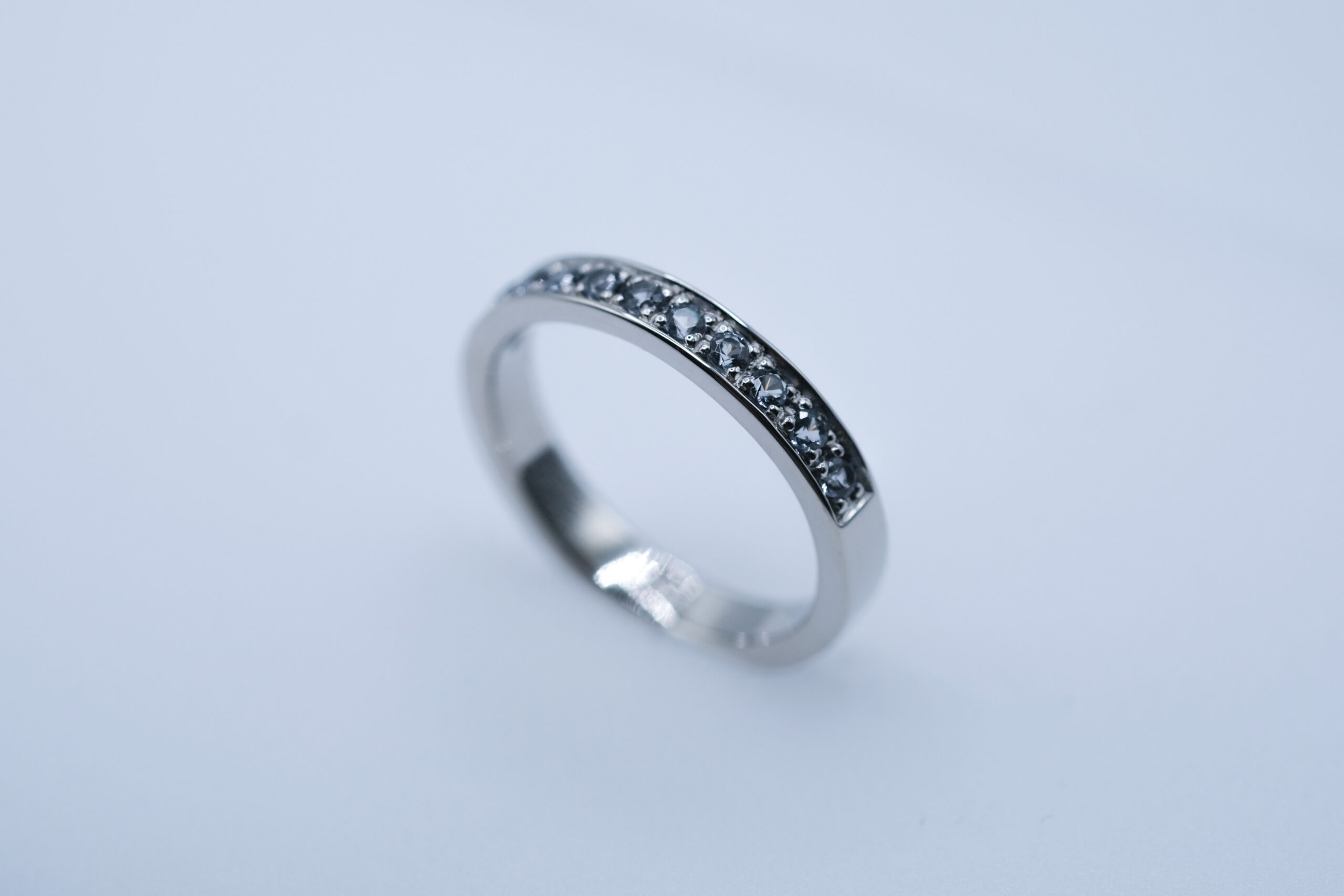 Anillo medio cintillo de oro blanco con espinelas grises de 1.8mm.