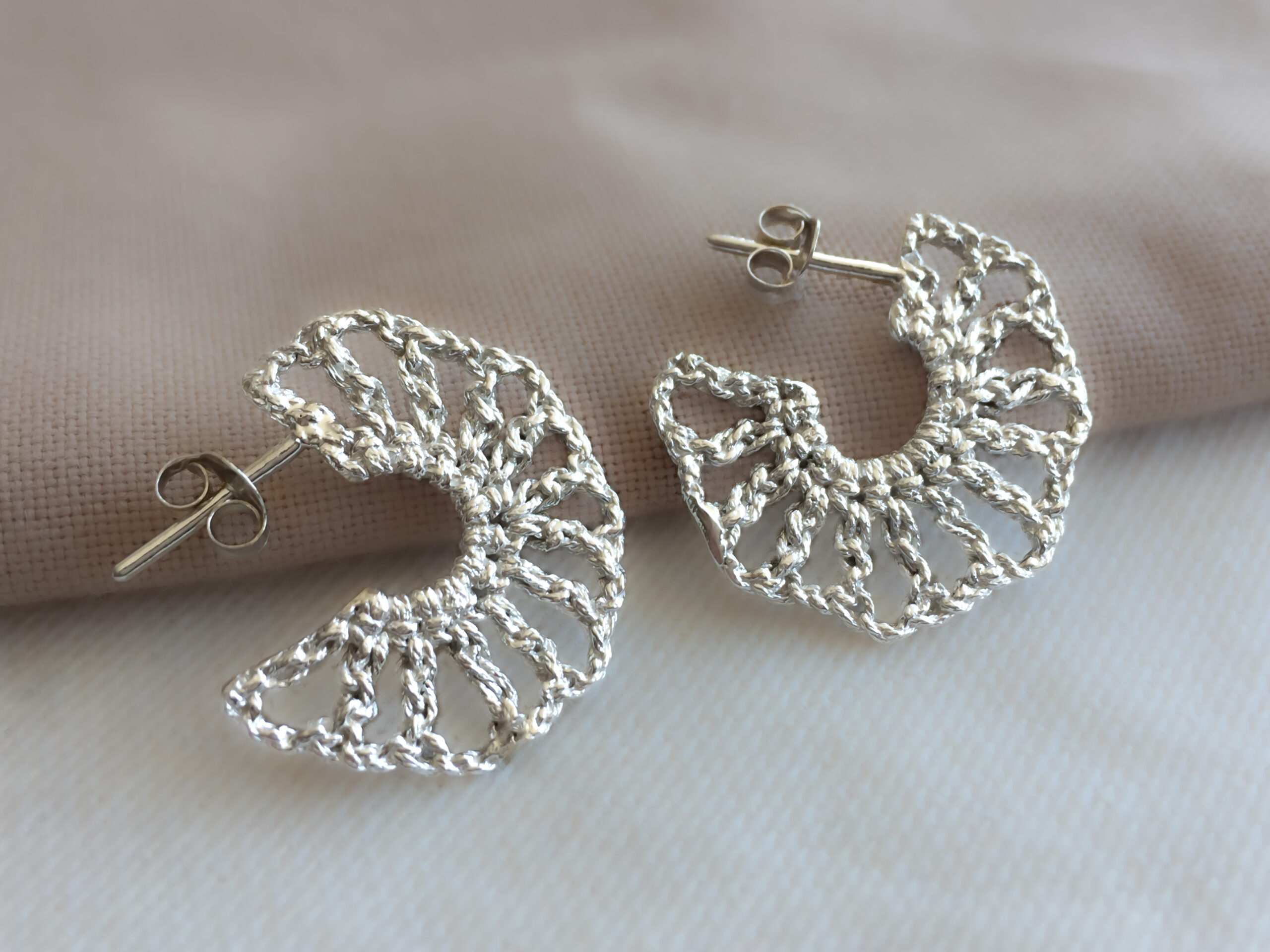 Aros de plata 95, modelo de tejido a crochet. metal: Plata 950