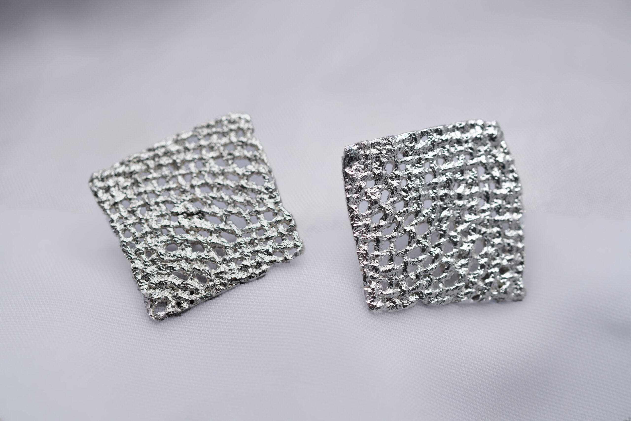 Aros cuadrados de entramado textil. Una pieza moderna y sofisticada, que da mucha luz a tu cara. metal: Plata 950