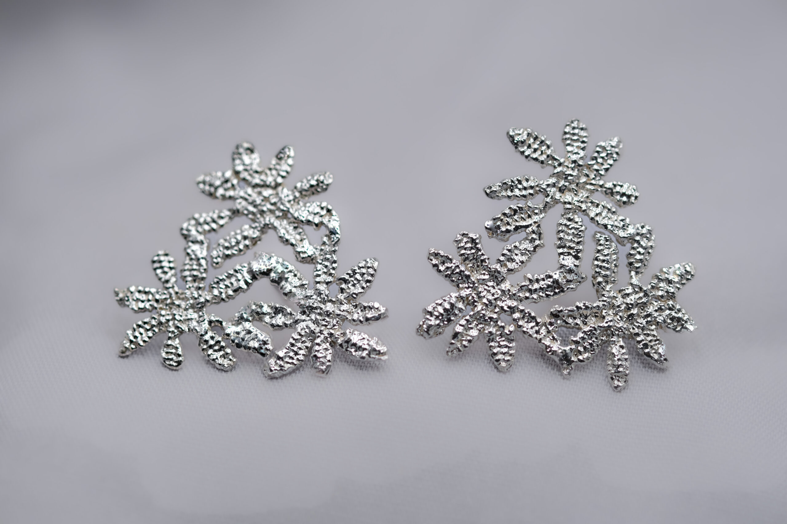 Aros con un delicado diseño floral de un tejido con naveta. Una pieza llamativa que elevara la luz de tu cara. metal: Plata 950