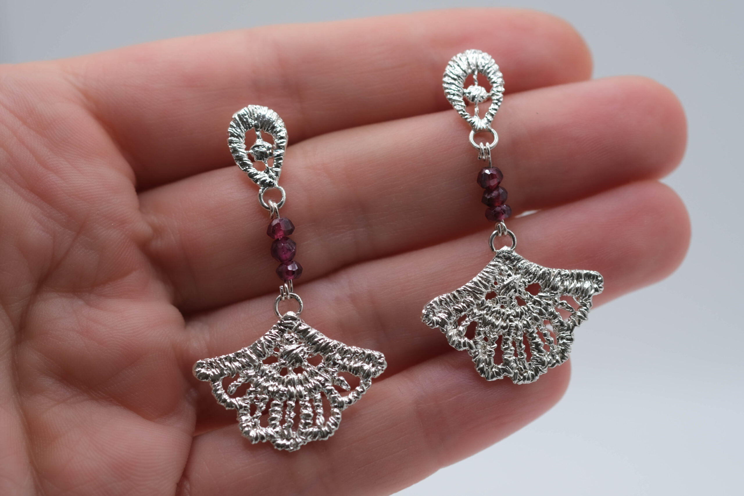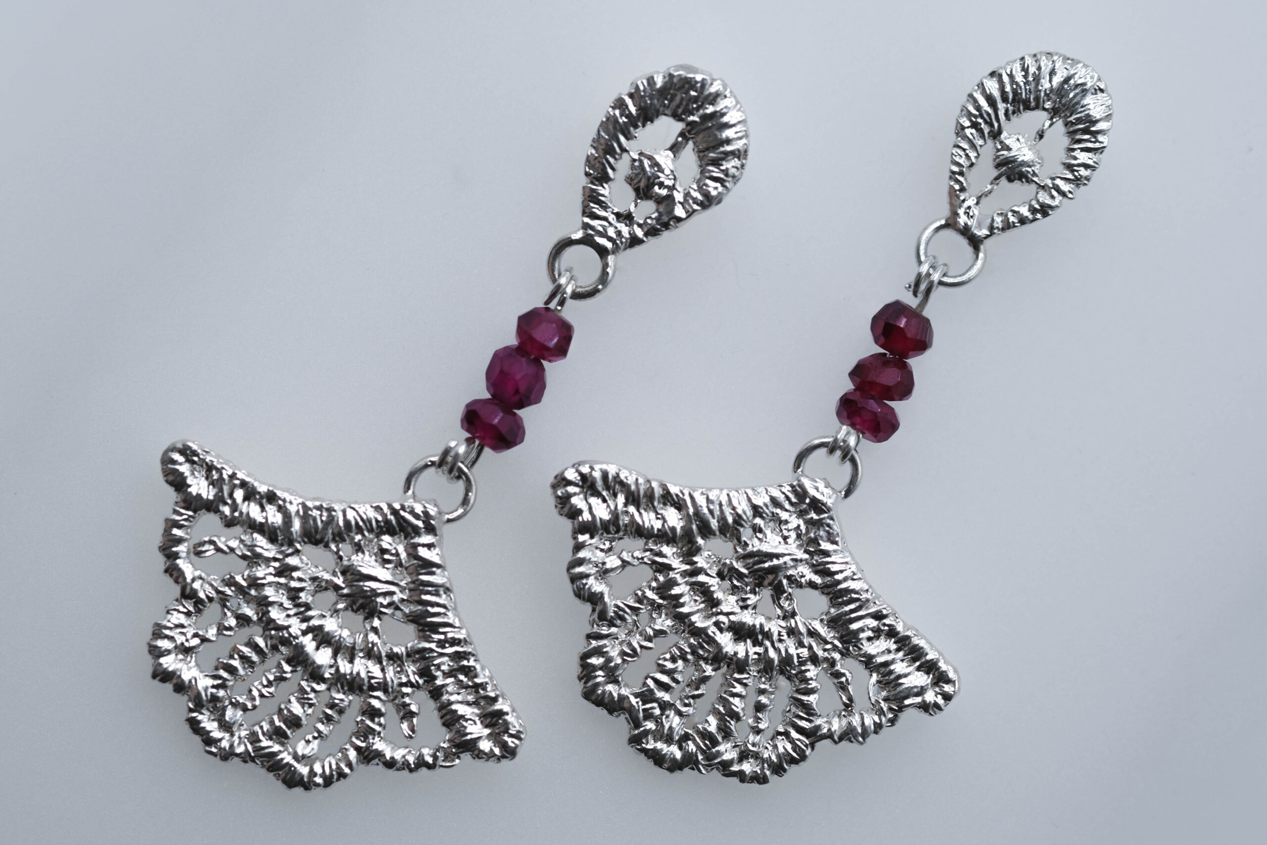 Aros Gota y Flor Granate