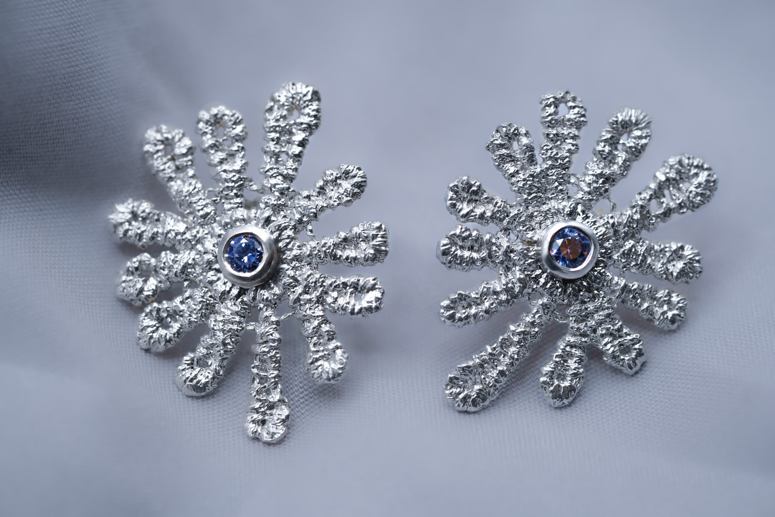 Aros de plata con diseño floral y una piedra central que aporta un toque de color vibrante.
