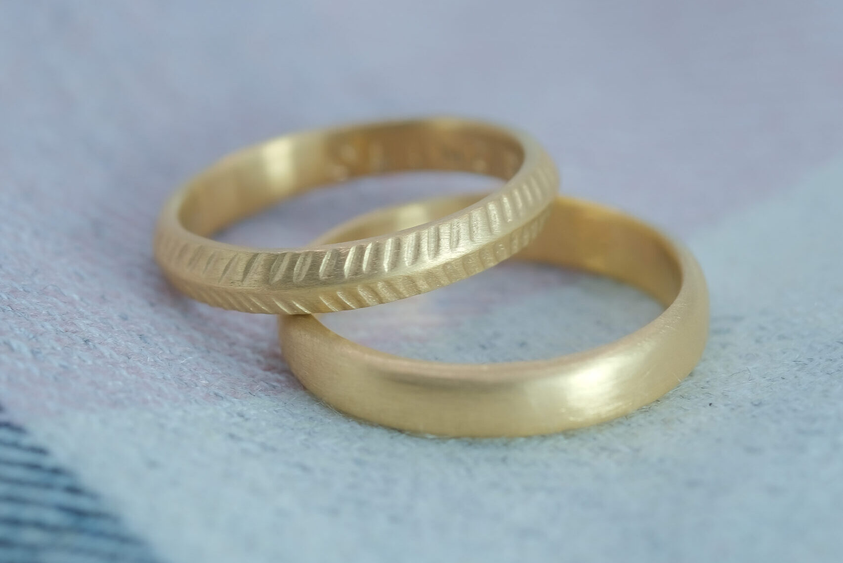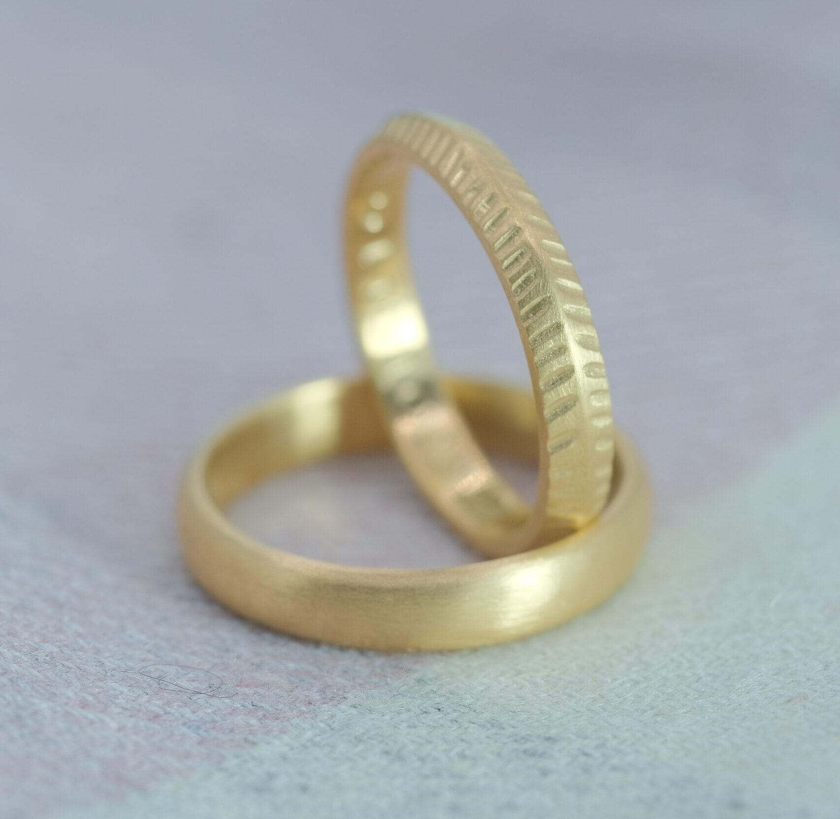 Estas argollas de diseño simple, tienen un diseño sutilmente grabado en su superficie, con líneas verticales que aportan un toque de textura y otra lisa con leve curvatura ambas en acabado mate.
